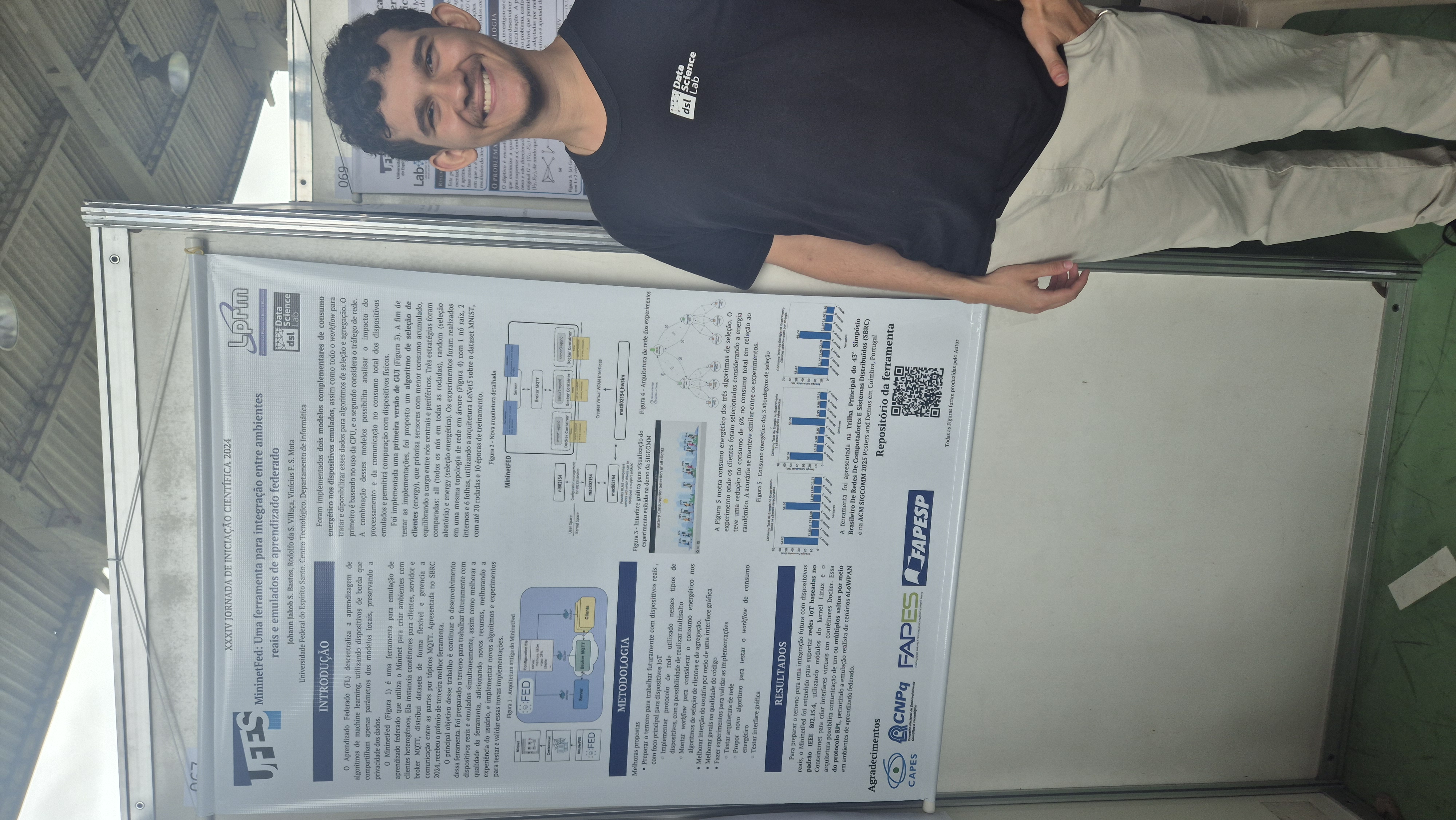 Student Johann Jakob S. Bastos, supervised by professors Rodolfo da Silva Villaça and Vinícius F. S. Mota, presented the project “MininetFed: a tool for integration between real and emulated federated learning environments.”